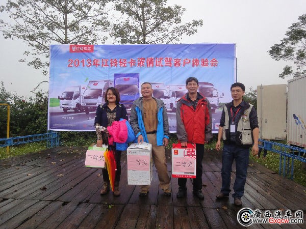 美好的時(shí)光總是短暫的,美景、比賽、賽馬等已隨著時(shí)間流逝。*后由廣西江鈴品牌經(jīng)理頒發(fā)今天輕卡試駕比賽冠軍得主獎(jiǎng)品,并合影留念恭祝此次活動(dòng)圓滿成功。