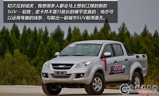 近日,小編從江鈴汽車旗下廣西云匯汽車公司4S店了解到,號稱江鈴王者風范江鈴域虎在即將跨越2014的步伐中正火熱清庫中。**眼看到江鈴域虎時,你會感覺到它與傳統(tǒng)美式皮卡的設計十分相同。江鈴域虎采用了線條渾厚的“肌肉感”設計,整體造型由蘭博基尼、瑪莎拉蒂的設計者Marc Deschamps打造,整車線條流暢細節(jié)飽滿,身材健碩沉穩(wěn)。域虎外形尺寸為長5325mm、寬1905mm、高1815mm,完全可以保證載人和載物的需求。