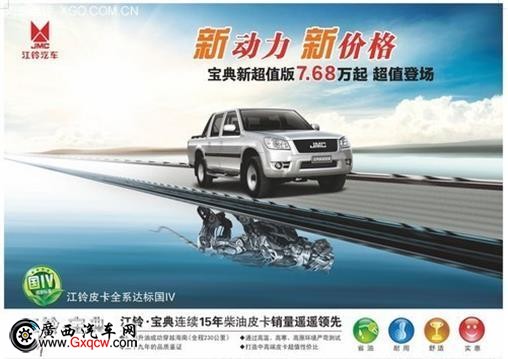 從國(guó)內(nèi)商用車(chē)市場(chǎng)發(fā)展的歷程來(lái)看,一次大的標(biāo)準(zhǔn)升級(jí)調(diào)整,對(duì)廠商而言,往往是幾家歡喜幾家愁。在國(guó)II到國(guó)III切換時(shí),部分技術(shù)不成熟的商用車(chē)企業(yè)靠假國(guó)III技術(shù)或套牌銷售,并未對(duì)銷量及份額帶來(lái)實(shí)質(zhì)性影響,而本輪國(guó)IV的切換據(jù)可靠信息,國(guó)家會(huì)相對(duì)嚴(yán)格執(zhí)行,這樣在技術(shù)與價(jià)格方面占據(jù)優(yōu)勢(shì)的企業(yè)與產(chǎn)品將會(huì)脫穎而出,對(duì)于江鈴皮卡而言,寶典新超值版也勢(shì)必成為國(guó)IV階段一顆璀璨明星,讓我們拭目以待!