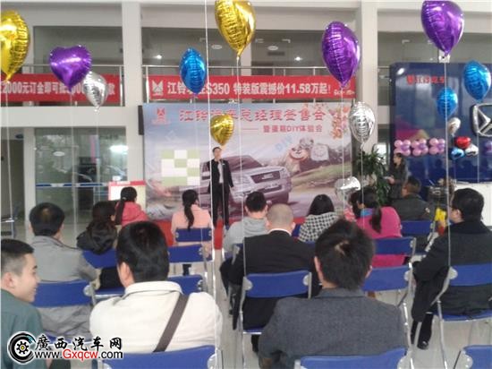 2014年3月15日,廣西云匯4S店舉辦的“江鈴汽車總經(jīng)理簽售會(huì)暨蛋糕DIY體驗(yàn)活動(dòng)|”成功圓滿落幕;顒(dòng)當(dāng)天,即使天空下著淅瀝小雨,但仍擋不住江鈴客戶們的熱情及對(duì)總經(jīng)理簽售會(huì)活動(dòng)的滿懷期待,此次活動(dòng)邀約的25組客戶,全都準(zhǔn)時(shí)到達(dá)4S店,經(jīng)最終統(tǒng)計(jì),活動(dòng)成功產(chǎn)生訂單7臺(tái),下面由小編上幾張片片讓大家一睹為快!