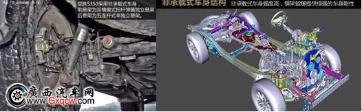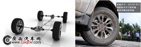 非承載式車身,專業(yè)越野底盤,前懸架為雙橫臂式扭桿彈簧獨(dú)立懸架,后懸架為五連桿式非獨(dú)立懸架,配合一套分時(shí)四驅(qū)系統(tǒng),有著不錯(cuò)的通過性能.采購美國博格華納的四驅(qū)分動器,實(shí)現(xiàn)與**四驅(qū)技術(shù)同步。新馭勝S350AT車型的驅(qū)動模式分為后輪驅(qū)動、智能四驅(qū)模式。適時(shí)智能四驅(qū)模式結(jié)構(gòu)簡單,穩(wěn)定性高,堅(jiān)固耐用。陡坡、泥濘或者雪地路面都可輕松應(yīng)對,既能保證車輛的動力性和通過性,又能兼顧燃油經(jīng)濟(jì)性。