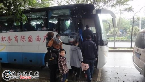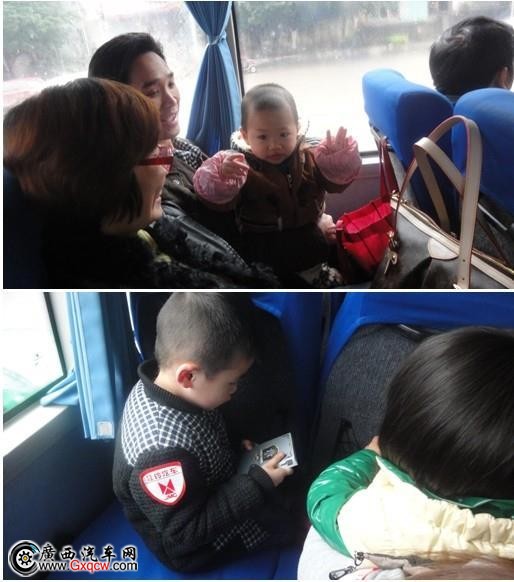 在大巴車上大家都是滿滿的期待到達目的地享受植樹的喜悅心情,車上的小朋友也非常乖的等待著,你這小家伙擺起小POSE應我們的照相機。還有的幾個小朋友坐在一起嬉戲,正當他們玩得起興的時候,我們的大巴也來到南寧亞熱帶植物研究中心內銀湖山莊。