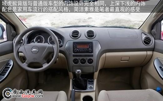 內(nèi)飾方面,域虎的內(nèi)飾以米黃色和搭配銀色為主基調(diào),現(xiàn)代感十足,比較美觀、時(shí)尚。圓形的空調(diào)出風(fēng)口和空調(diào)旋鈕使整臺(tái)車的內(nèi)飾更加運(yùn)動(dòng)化。不得不提的是域虎在內(nèi)飾做工上的細(xì)致程度,顛覆了傳統(tǒng)皮卡粗糙的感覺(jué),而且功能豐富,所以說(shuō)域虎完全可以作為一款家用車來(lái)使用。域虎全系手動(dòng)五檔,電子控制驅(qū)動(dòng)旋鈕就在擋把下方,方便駕駛員進(jìn)行驅(qū)動(dòng)切換。域虎可選高速兩驅(qū)、高速四驅(qū)、和低速四驅(qū)三種驅(qū)動(dòng)方式。