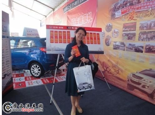 以上這位溫柔漂亮的女士,車展期間參與江鈴SUV車展百分百中獎(jiǎng)活動(dòng),竟然幸運(yùn)抽中江鈴SUV車模一個(gè),穿過(guò)女士燦爛的笑容透出她此時(shí)此刻中獎(jiǎng)的喜悅心情。