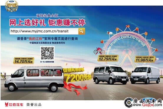 歡度五月,即日起至6月30日到廣西江鈴4S店購(gòu)買江鈴福特經(jīng)典全順多功能車,*高可享受7200元促銷大禮包。歡迎感興趣的廣大朋友趕快到廣西江鈴4S店選購(gòu)吧!咨詢熱線:0771-3119811.