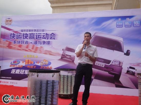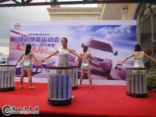 活動開幕,首先由廣西江鈴全順品牌黎經(jīng)理發(fā)表致辭,并詳細講解比賽規(guī)則。然后,由靚麗的姑娘跳起動感水鼓舞,預祝每個客戶朋友們都賽出得意的成績,同時,預祝此次快運快贏活動舉得圓滿成功。