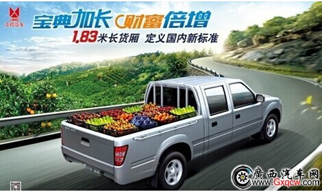近日,小編從廣西云匯4S店了解到,江鈴寶典加長廂皮卡即將登陸南寧,其中,寶典新超值版加長貨廂皮卡售價(jià)僅是8.03萬元起,高效率,新標(biāo)準(zhǔn),敬請廣大朋友關(guān)注!
