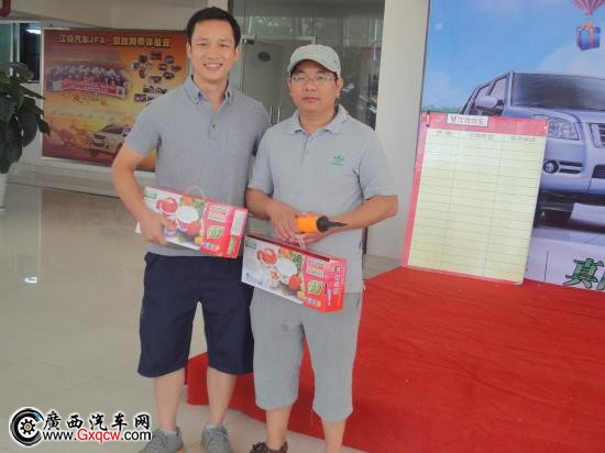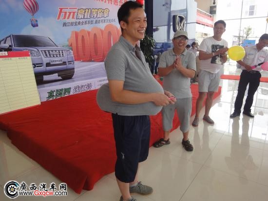 嘿嘿~這兩位大哥是“比誰肚子大”互動游戲中獲勝者,手中提著游戲戰(zhàn)利品,臉上掛滿喜悅的心情。接下來,激動人心的時刻來了,訂車的朋友下訂單的時候到了。