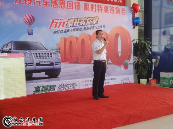 8月30日周六上午,位于白沙大道廣西云匯汽車在4S店內(nèi)隆重舉行寶典新時尚版皮卡簽售會并舉得圓滿成功。當(dāng)日上午江鈴客戶朋友們準(zhǔn)時來到云匯展廳的會場自覺到簽到處簽到,隨即賞車或品嘗江鈴伙伴們豐盛的冷餐、參與趣味有獎問答,訂車榜上更是添上不同韻味的筆記。整個活動洋溢著濃濃的愉悅氣氛。