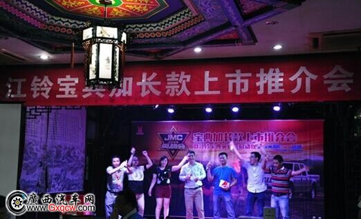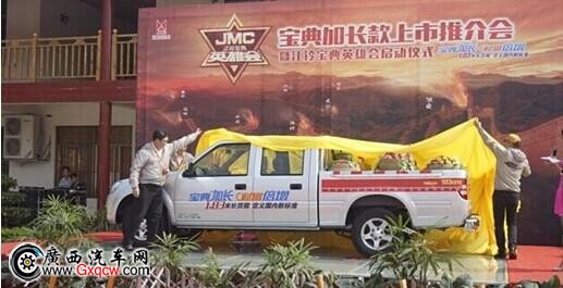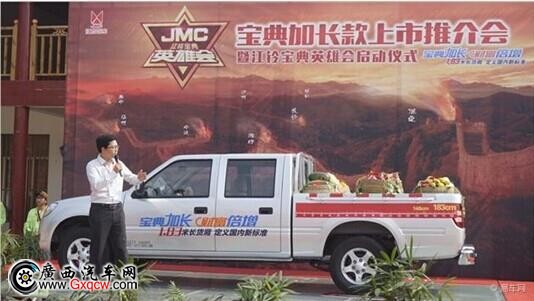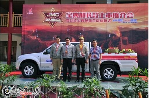 2014年10月11日(周六),江鈴寶典加長款推介會暨江鈴寶典英雄會啟動儀式于南寧銀林山莊正式啟動,江鈴皮卡車型眾多新老客戶、其他品牌客戶和區(qū)內(nèi)多家主流媒體前來參加,共同見證了江鈴江鈴寶典加長廂皮卡上市發(fā)布,且新車起售價為8.03萬元,可謂誠意產(chǎn)品價格,發(fā)布會現(xiàn)場不僅可賞新車,還可體驗趣味試駕有獎活動,及享受風味的壯鄉(xiāng)晚宴。下面我們共同感受活動期間精彩一刻!