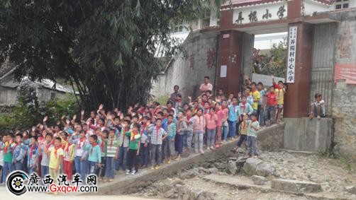 經(jīng)過一個小時的互動,愛車車隊來到要離開學(xué)校返回百色的時候了,孩子們站在校門口,依依不舍地?fù)]手告別。