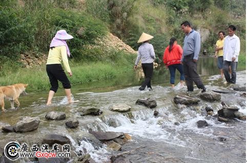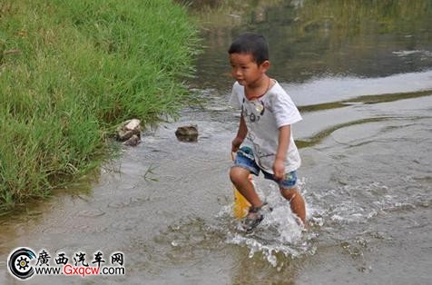 江鈴·溪橋工程便民橋援建地——邏樓鎮(zhèn)弄棍村——鄧小平等革命家1929年發(fā)動百色起義,曾將這里作為軍事指揮部。當(dāng)年就有的那單河依然橫在村頭,如今卻成了鄉(xiāng)親們出行的”攔路虎“。村里的農(nóng)特產(chǎn)品運(yùn)不出去,鄉(xiāng)親們外出打工、趕集、務(wù)工、走親戚、小孩上學(xué),只能趟水而過。即便目前還不是汛期,愛心車隊?wèi){借越野車良好的通過性,要涉水過這條河,尚且困難。但在活動現(xiàn)場,記者看到當(dāng)?shù)氐拇笕撕托『⑦^河時很自然地脫掉鞋子,趟河而過,連小孩也沒有畏懼——他們每天都這么過河,這種場景已成為他們?nèi)粘I畹囊徊糠。但是如果碰到汛期,河水暴漲,鄉(xiāng)親們只能望河興嘆,而汛期,每年總有那么兩三個月。
