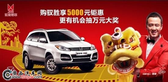 據(jù)獲悉,小編從廣西云匯4S店了解到,即日起至2月28日到店訂購江鈴新馭勝S350即可享受新年特惠現(xiàn)金5000元,您還可參加百分百抽獎(jiǎng)活動(dòng),*高可贏取10000元大獎(jiǎng)。新年新跡象,買SUV,選江鈴新馭勝S350。歡迎到廣西云匯4S店選購,經(jīng)銷商熱線:0771-3800599