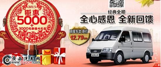 新年新氣象!2015年福特全順全心感恩全新回饋,自1月1日到2月28日期間,到店選購經(jīng)典全順多功能車享鉅惠5000元再送價值3000元新春大禮包,驚喜多多!感興趣的消費者可以前往福特全順各地經(jīng)銷商。目前,福特全順官方微信推出了掃底盤號查價活動,速速掃二維碼加入進(jìn)來吧!