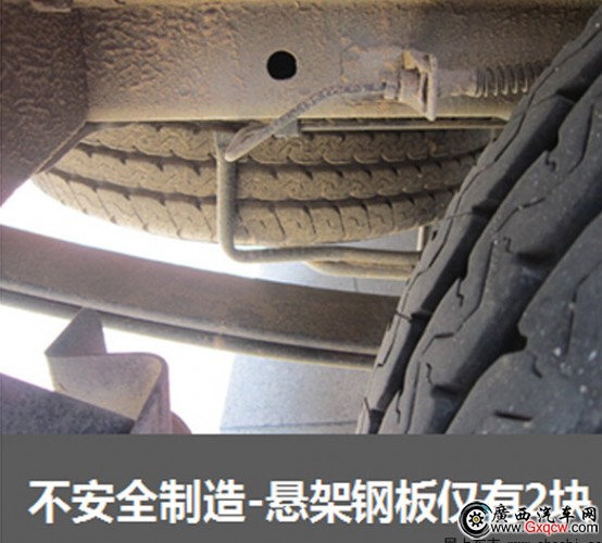 為滿足物流車輛高承載力的需求,江鈴福特全順特別采用了三片加厚鋼板彈簧,以加大承載量。而該自主品牌僅有2塊普通懸架鋼板的底盤,絕對是制造過程中“實打?qū)崱钡耐倒p料,視消費者利益為無物!