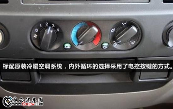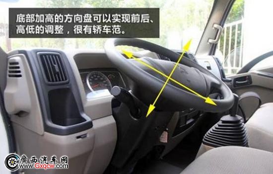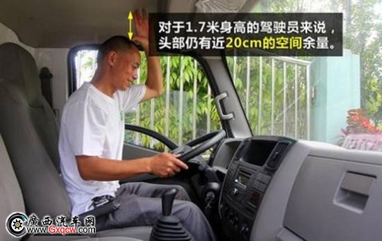 由于采用了大幅面的檔風玻璃,凱銳800的駕駛室的高度空間帶來了很大的提高。1.7米身高的駕駛員,頭頂與駕駛室頂篷仍然有近20cm的高度余量,絲毫沒有窄體輕卡那種空間壓抑感。