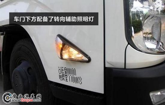 為方便駕駛員夜間進入城區(qū)或狹小場地裝載貨物,凱銳800在車門下方配備了轉(zhuǎn)向輔助照明燈。當夜間低速度進入轉(zhuǎn)彎道路或狹窄區(qū)域時,只要駕駛員撥動轉(zhuǎn)向燈,車門上的轉(zhuǎn)向輔助照明燈即自動亮起,照亮大燈無法顧及的側(cè)面盲區(qū)。