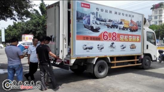 近日,為了滿足二三級及縣份市場的需求,廣西江鈴輕卡走進南寧重點縣份賓陽展開巡展活動,巡展期間,江鈴新老客戶朋友在家門口即可親身體驗凱銳N800試乘試駕,同時廣西江鈴還為車友們準備一份精美禮品。