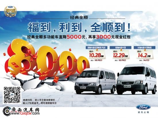 近日,小編從廣西江鈴汽車安吉4S店了解到,11月到店購江鈴金典全順多功能車立享現(xiàn)金讓利1500元,限時(shí)鉅惠,欲購車的朋友趕快到店搶購吧,咨詢熱線:0771-3119811.