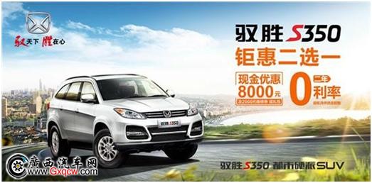 近日,據(jù)小編走訪廣西云匯汽車4S店了解到,11月期間到店購江鈴新馭勝S350車系即可現(xiàn)金讓利8000元再加2000元裝飾禮包。限時(shí)限量,機(jī)會(huì)難得,感興趣的廣大朋友歡迎來店咨詢搶購!咨詢熱線:0771-3800599.