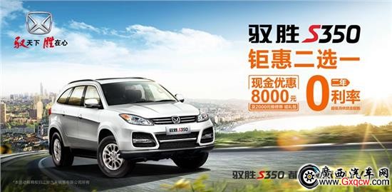 據(jù)獲悉,截止11月30日購江鈴馭勝S350即可享受現(xiàn)金讓利8000元再加2000元禮包,限時鉅惠,感興趣的廣大朋友快快到店搶購吧!咨詢熱線:077-3800599.