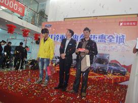 其次到了“砸金豬”的時候了,現(xiàn)場訂購指定車系即可有機會砸金豬,金豬*高金額為1688元,看上面這位充滿福相的老板,一砸馬上砸中1688元,不僅可以享受金豬獎,同時,憑禮品券可領取一份紀念品。