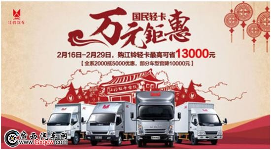 據(jù)獲悉,即日起至3月31日江鈴輕卡在開春之季推出凡購(gòu)買江鈴全系任意輕卡交2000元訂金即可抵5000元購(gòu)車款,相當(dāng)于直接優(yōu)惠3000元購(gòu)車現(xiàn)金。如此優(yōu)惠,您還在等什么呢?趕快到廣西江鈴安吉4S店搶購(gòu)吧!咨詢熱線:0771-3119811.