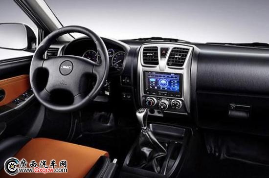在內(nèi)飾方面,2016款江鈴寶典以全系標(biāo)配的時(shí)尚舒適設(shè)計(jì),顛覆了以往的簡約樸素風(fēng)格。黑橙色調(diào)搭配的內(nèi)飾,帶來強(qiáng)烈的視覺沖擊效果,更顯運(yùn)動(dòng)時(shí)尚。冰藍(lán)儀表盤以及7寸中控大屏,讓車內(nèi)時(shí)光更愉悅;皮質(zhì)座椅、車門內(nèi)飾板軟質(zhì)皮革,都讓這個(gè)老牌皮卡更具檔次和質(zhì)感。