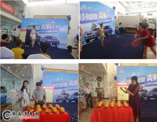 客戶朋友們來到廣西江鈴參與活動不僅吃好、看好,當(dāng)然還可以拿好,接下來就是有獎問答、互動游戲及訂車砸金豬環(huán)節(jié)了。