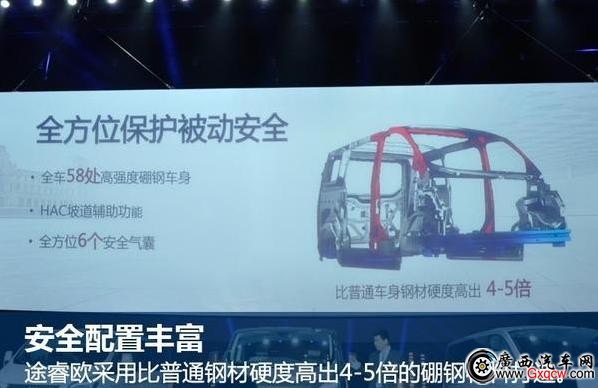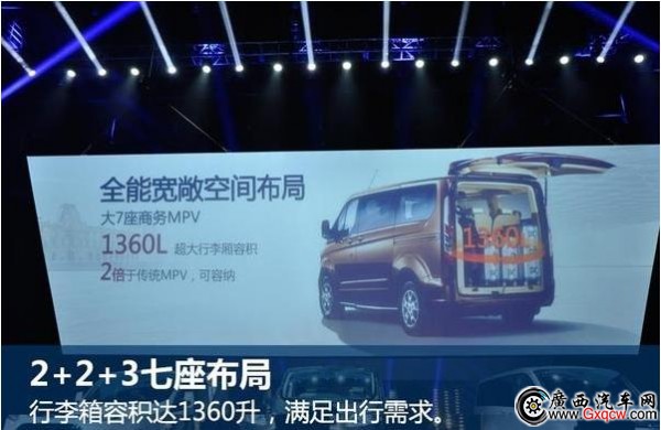 途睿歐車身寬度達到了2.03米,超過傳統(tǒng)MPV八個百分點;車身高度達1.98米,超過傳統(tǒng)MPV12個百分點。第三排可以輕松坐下三個姚明”。1360L超大行李廂容積,使行李廂的裝載能力具有更多可能。