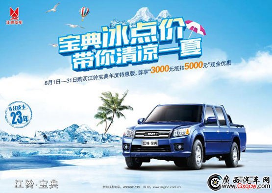9月1日至30日購買江鈴寶典尊享“3000元抵扣5000元”現(xiàn)金優(yōu)惠,詳情請咨詢,廣西江鈴安吉4S店。咨詢熱線:0771-3119811.地址:南寧市安吉大道中段30-25號