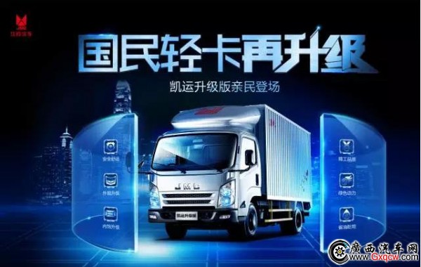 長期以來,江鈴輕卡的產(chǎn)品都被稱為“國民輕卡”。憑借超高的品質(zhì)和超強的口碑,贏得了眾多用戶的信賴和支持。此次全新上市的凱運升級版延續(xù)了江鈴輕卡“流行“、“優(yōu)秀“、“進取“的基因,再加上顏值、空間、配置、性能的升級,一臺富有生命力的輕卡就此誕生。