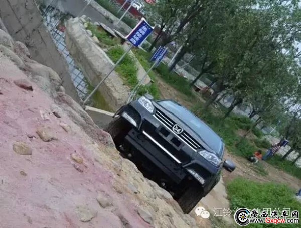 結(jié)果:馭勝S350特殊調(diào)教的懸架設(shè)計,底盤剛度更高,輕松碾壓而過。