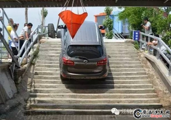 內(nèi)容:長11米、寬5米的樓梯,人走上去容易,車開上去可不容易。爬樓梯除了要有強勁的動力,對輪胎、底盤都有極高的要求。