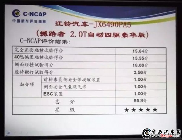 4月25日,2016年度**批C-NCAP碰撞試驗結(jié)果在北京車展發(fā)布,福特撼路者以55.8分的總成績斬獲五星,這是硬派中大型SUV參加C-NCAP**個五星安全冠軍。連同2015年澳洲A-NCAP的五星安全冠軍,撼路者已經(jīng)斬獲中澳安全碰撞測試“雙五星”。