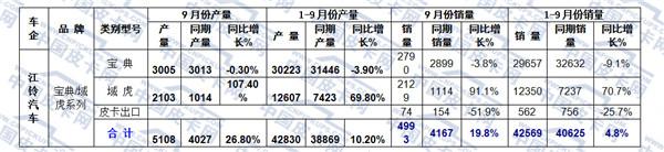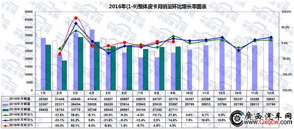 皮卡市場(chǎng)方面,去年1-9月份累計(jì)生產(chǎn)249706輛,年累計(jì)同比增長率12.6%,累計(jì)銷售248712輛,年累計(jì)同比增長率11.9%。