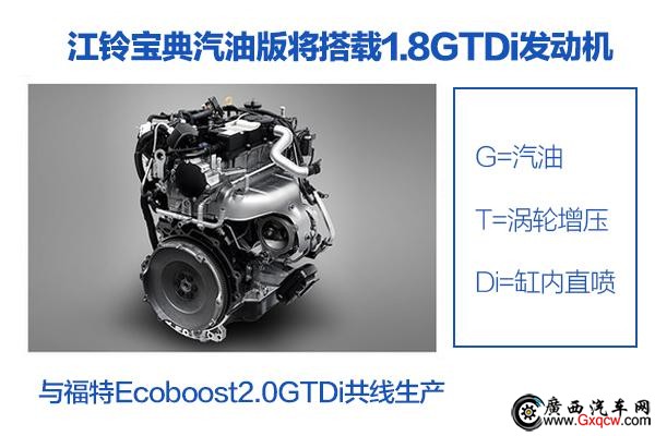 去年下半年上市的江鈴寶典1.8T,是國內(nèi)自主品牌首款汽油渦輪增壓皮卡,其搭載的1.8GTDi發(fā)動(dòng)機(jī),擁有低速高扭的特性。渦輪增壓+中冷技術(shù)、缸內(nèi)直噴、雙連續(xù)可變VVT、電控可變排量機(jī)油泵、缸孔螺傘滑珩等技術(shù)的采用,讓這款新車的百公里油耗僅為8升,兼具動(dòng)力和環(huán)保。