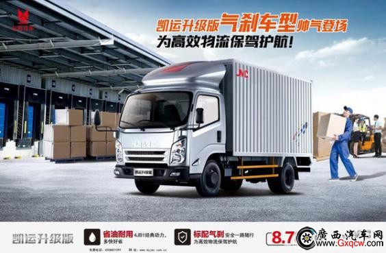 2016年底,凱運(yùn)升級(jí)版液剎車型在全國上市,高顏值外觀+省油耐用4JB1內(nèi)芯,博得了較高的市場關(guān)注度和好評(píng)。2017年備受關(guān)注的氣剎車型如期而至,配備氣剎的凱運(yùn)升級(jí)版安全性能提升一個(gè)等級(jí),特別在復(fù)雜路況和拉重活的情況下,氣剎車型可以更好地為高效物流保駕護(hù)航。