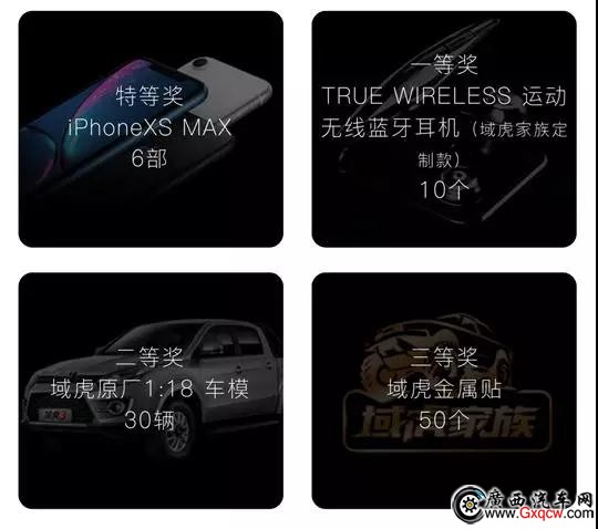 本次活動除了iPhone XS Max,我們同時還準(zhǔn)備了運動無線藍(lán)牙耳機、域虎車模等精彩好禮!