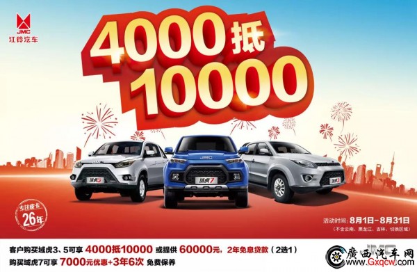 購買域虎3、5可享4000元抵10000元或提供60000元,2年免息貸款(2選1)