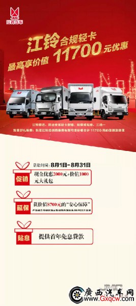 自8月1日-31日,購江鈴皮卡可享優(yōu)惠如下↓↓↓