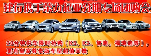 好消息世界杯鉅惠風暴 限時超低價特賣團購會,建行攜手榮力起亞大型專場團購于6月21日至22日全城惠戰(zhàn)南寧。建行信用卡VIP客戶、華安VIP客戶、榮力起亞VIP客戶都會得到價格政策*優(yōu)惠,活動后價格回收,只為參加專場活動的客戶推出,所有客戶享受超期望的價格底線。三方合作,三方優(yōu)惠,給客戶更多一站式服務。