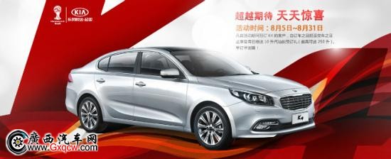 K4是東風(fēng)悅達(dá)起亞為中國(guó)市場(chǎng)打造的一款全新中型車,通過(guò)設(shè)計(jì)風(fēng)格和動(dòng)力配置的不同而受眾多人群所青睞。該車將提供1.8L、2.0L和1.6T三種動(dòng)力可選。為了迎接這一場(chǎng)新車盛宴,南寧榮力起亞4S店將啟動(dòng)預(yù)訂K4“油”好禮的活動(dòng):凡在活動(dòng)期間預(yù)訂K4的客戶,自訂車日起至8月31日止享受每日贈(zèng)送10L汽油的預(yù)訂禮(*高可送250升),早訂早劃算!