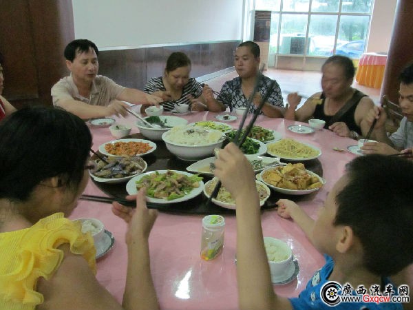 刺激的漂流,全程大概一個(gè)小時(shí),漂流完后,大家換洗完畢,然后聚集在野人谷餐廳就餐,就餐過程中都還能聽到車主們在談?wù)撝鴦倓偟钠,整個(gè)餐廳都能聽到大家的歡聲笑語。就餐完畢后,下午一點(diǎn)半,我們整裝返程,前往南寧,一路上都可以看到車隊(duì)那浩浩蕩蕩的陣勢。