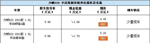 近日,開天力帆店內(nèi)力帆620現(xiàn)車銷售,顏色可選,目前購車部分車型可優(yōu)惠1萬元,感興趣的朋友可以到店咨詢購買,詳情見下表: