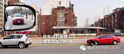 后車(chē)充滿(mǎn)后視鏡1/2時(shí)距離為7米—8米,這樣的距離進(jìn)行超車(chē)或者前車(chē)急剎車(chē)極容易造成事故的發(fā)生。