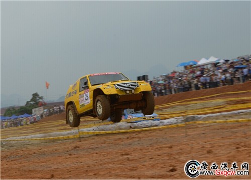 本次柳州站比賽是2014全國汽車場地越野賽的揭幕站,賽場共設(shè)有18道場地障礙,有跳臺、炮彈坑、沙坑、小三連峰、側(cè)坡、淺水池、繞樁、蹺蹺板、漂移彎、V型溝、碎石路、輪胎坑、臺階路、深水池等,賽道復(fù)雜程度可稱歷史之最,激烈程度遠(yuǎn)勝往年。