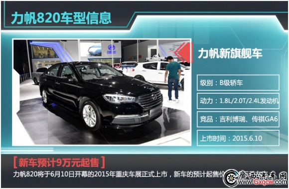 進(jìn)入2015年后,力帆汽車開(kāi)始逐步擴(kuò)大旗下產(chǎn)品的覆蓋范圍。2月份,力帆首款MPV車型“樂(lè)途”正式發(fā)布,而在本屆上海國(guó)際車展上,力帆又帶來(lái)了*新的旗艦車——820。日前,網(wǎng)通社從力帆汽車官方獲悉:全新B級(jí)車力帆820將于6月10日在重慶上市,新車有望搭載3種動(dòng)力的引擎,預(yù)計(jì)起售價(jià)格為9萬(wàn)元左右。待其投放市場(chǎng)后,將會(huì)與吉利博瑞展開(kāi)競(jìng)爭(zhēng)。