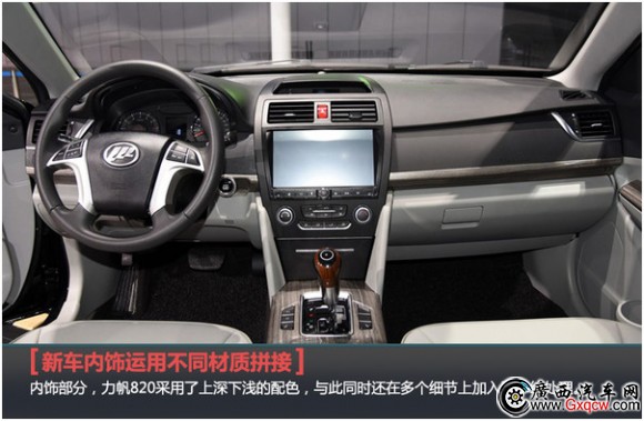 內(nèi)飾部分,力帆820運(yùn)用了多種顏色拼接技術(shù)。上深下淺的整體配色清新而不失豪華。中控位置功能按鍵及旋鈕的布局利落大方,大尺寸液晶屏集成了倒車影像,GPS導(dǎo)航等多項(xiàng)實(shí)用配置。全新設(shè)計(jì)的變速箱面板還增加了兩側(cè)的按鍵開(kāi)關(guān),駕駛者可在此進(jìn)行倒車?yán)走_(dá)、變速箱雪地模式、前排座椅加熱功能的操作。