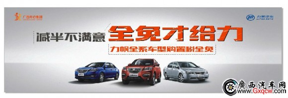 10月16日-19日廣西北灣暨汽交會(huì)車展在廣西體育中心盛大舉行,本次力帆汽車南寧開(kāi)悅4S店攜力帆SUV-X60、力帆720、力帆620參展,而此次展會(huì)力帆汽車同時(shí)為更有力響應(yīng)國(guó)家節(jié)能環(huán)保政策,在車展之際回饋消費(fèi)者,力帆汽車率先推出“減半不滿意全免才給力“金秋購(gòu)車季活動(dòng),在車展期間消費(fèi)者能以0購(gòu)置稅的實(shí)惠支出,輕松入手力帆汽車全系產(chǎn)品(新車力帆820除外)。